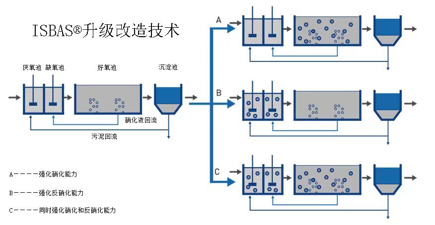 ISBAS ®工艺包不单纯是投加填料,是填料、工艺、池形、曝气、推流、拦网和液位控制等的综合设计。